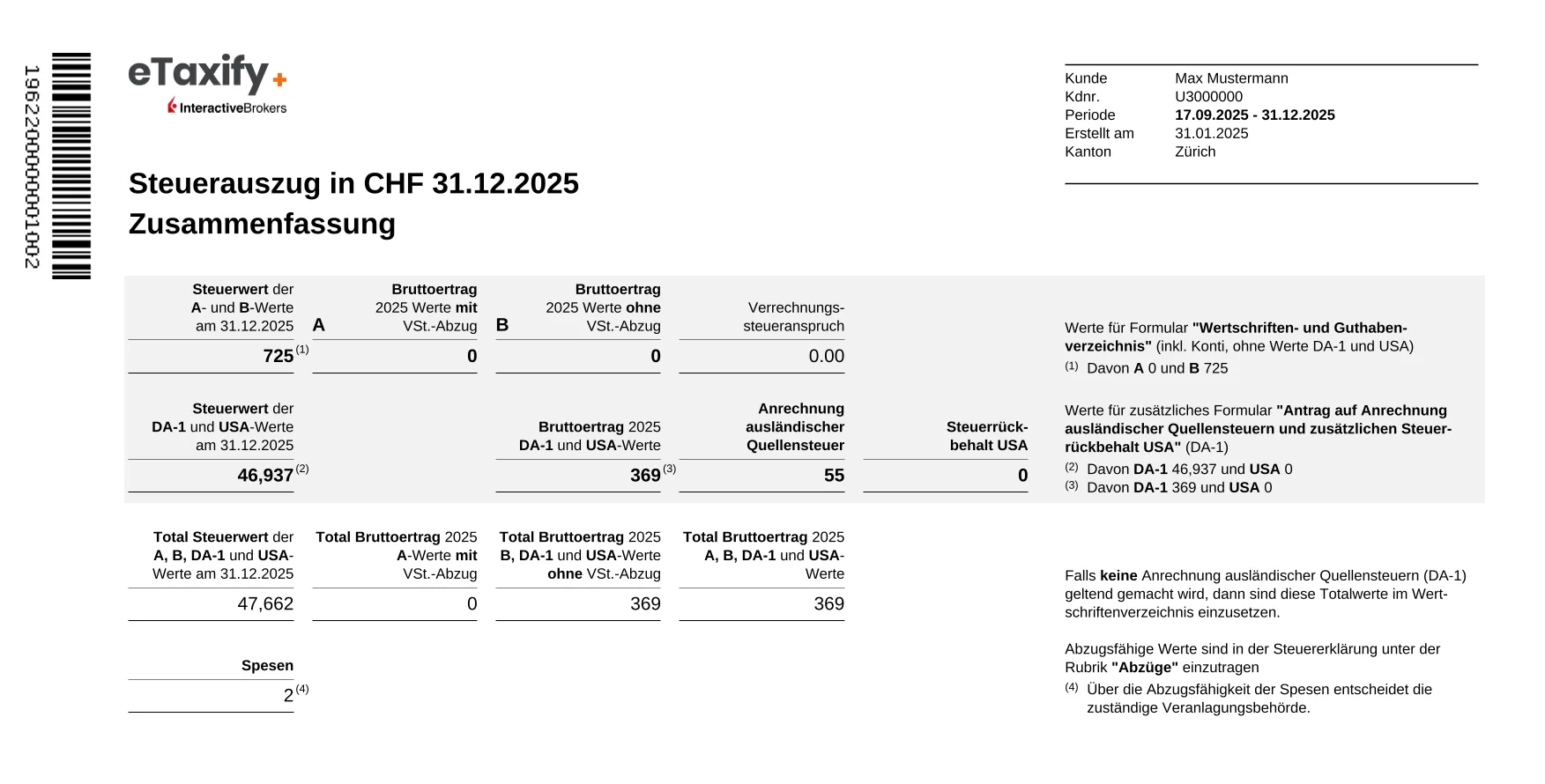 Ausländische Broker bieten keinen eSteuerauszug an, obwohl sie von jedem Schweizer Kanton akzeptiert werden.