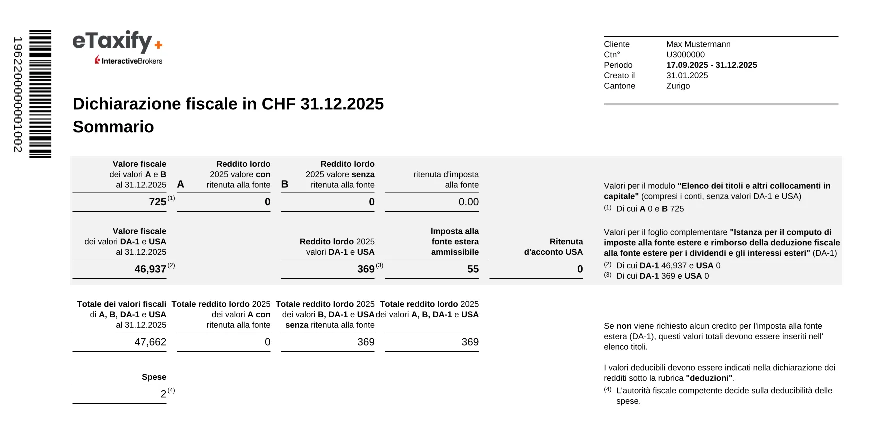 Creiamo il vostro estratto fiscale in pochi secondi e ve lo inviamo per e-mail.